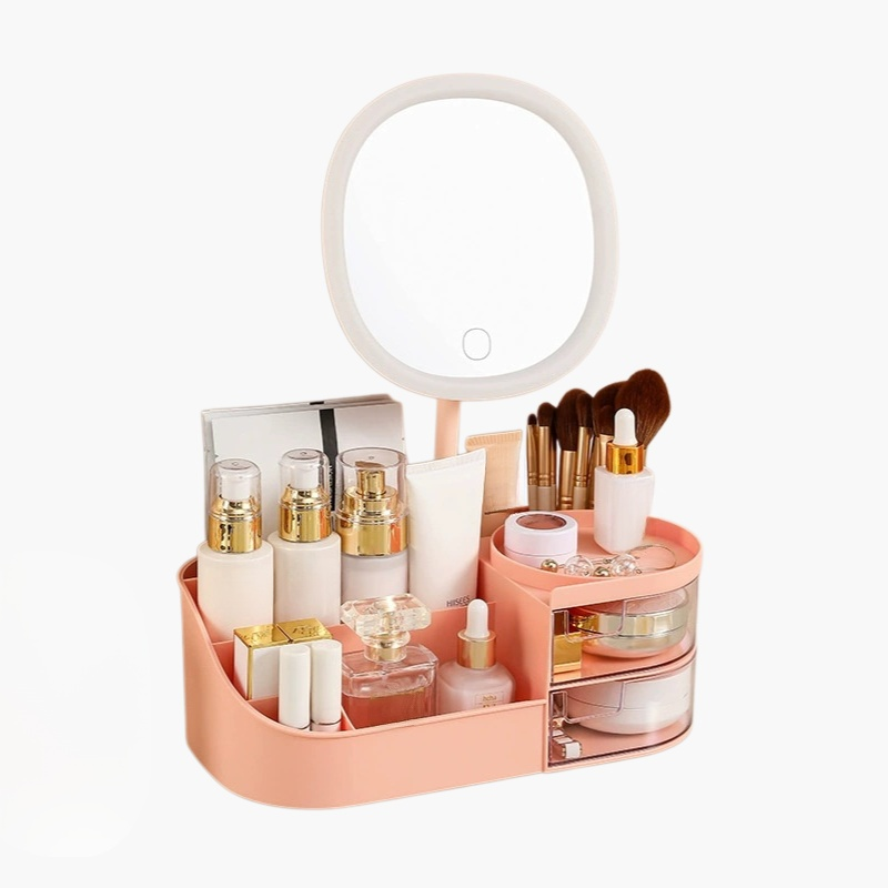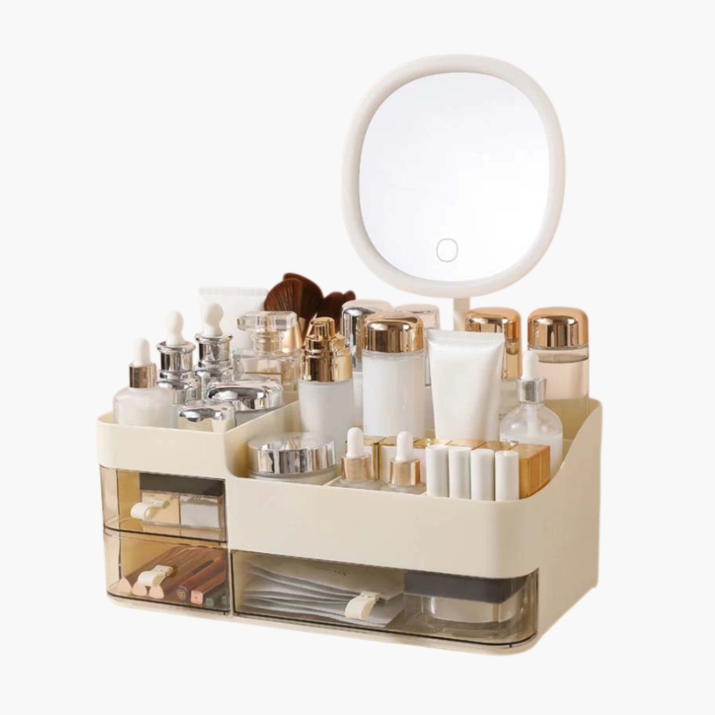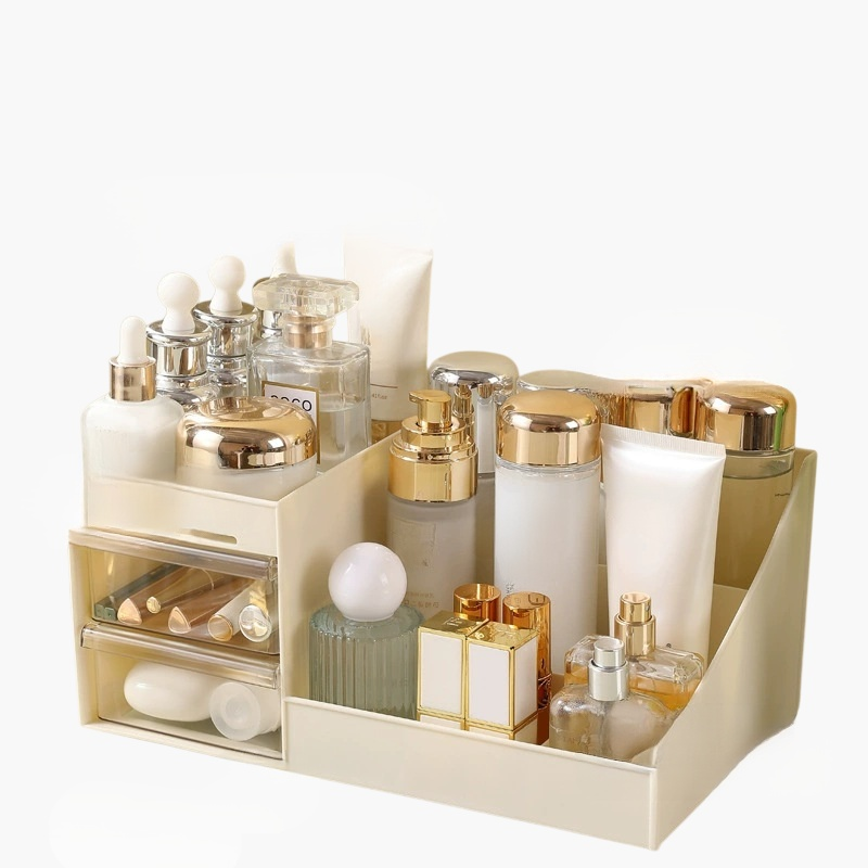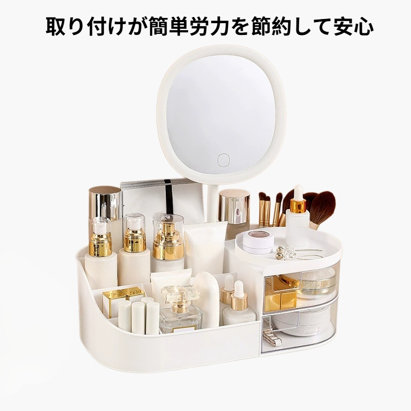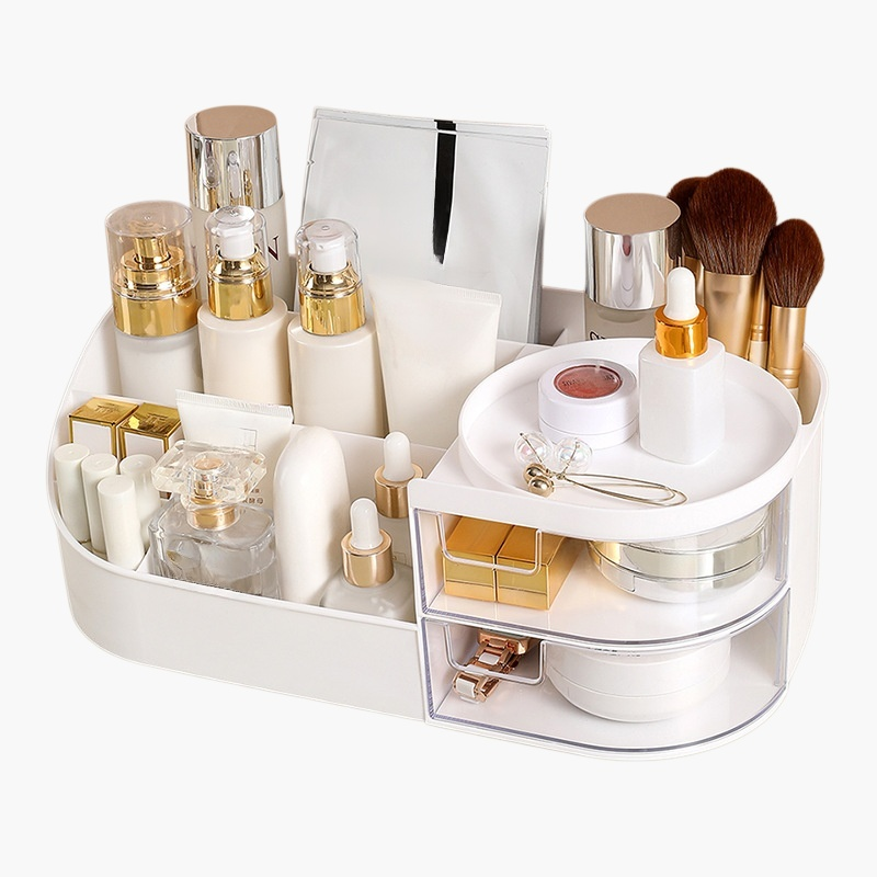 多機能メイクアップ収納ボックス。大容量設計でコスメやアクセサリーを整理。防塵・防水仕様、持ち運び便利、デスクや洗面所にも最適。